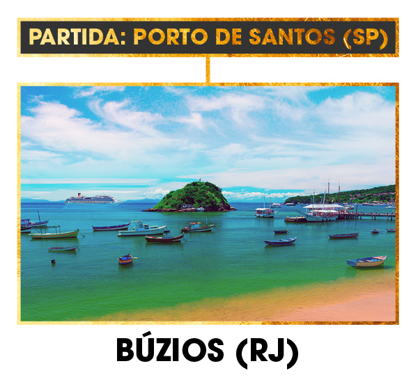 Nossa saída e chegada será do Porto de Santos em São Paulo (SP) e partiremos rumo a BÚZIOS, no litoral do RJ, onde ficaremos ancorados com embarque e desembarque de passageiros e uma programação especial no primeiro dia incluindo indicações de TOURS em terra (como ida ao beachclub Fishbone, passeios às praias de Búzios ou mergulho com lancha especial – compra à parte a bordo).
